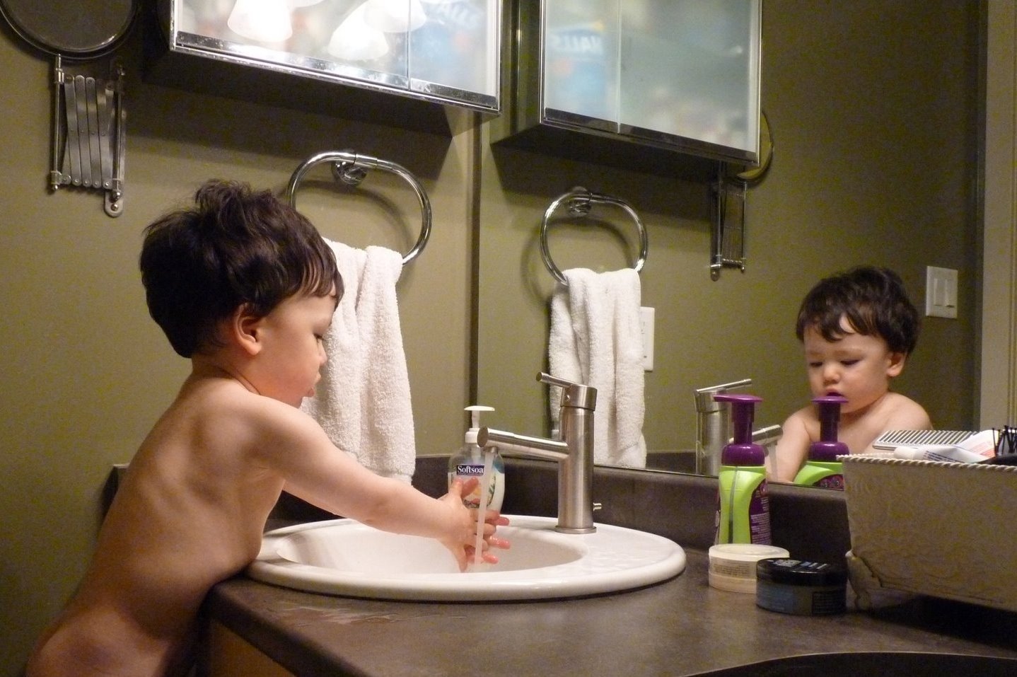 In the early evening Ryan decided to go on a hand washing marathon.  Here are a few photos.