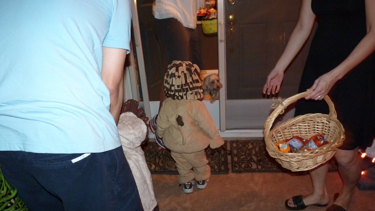 We have a cute video of Ryan as he collects his first Trick or Treat ever! Check it out: